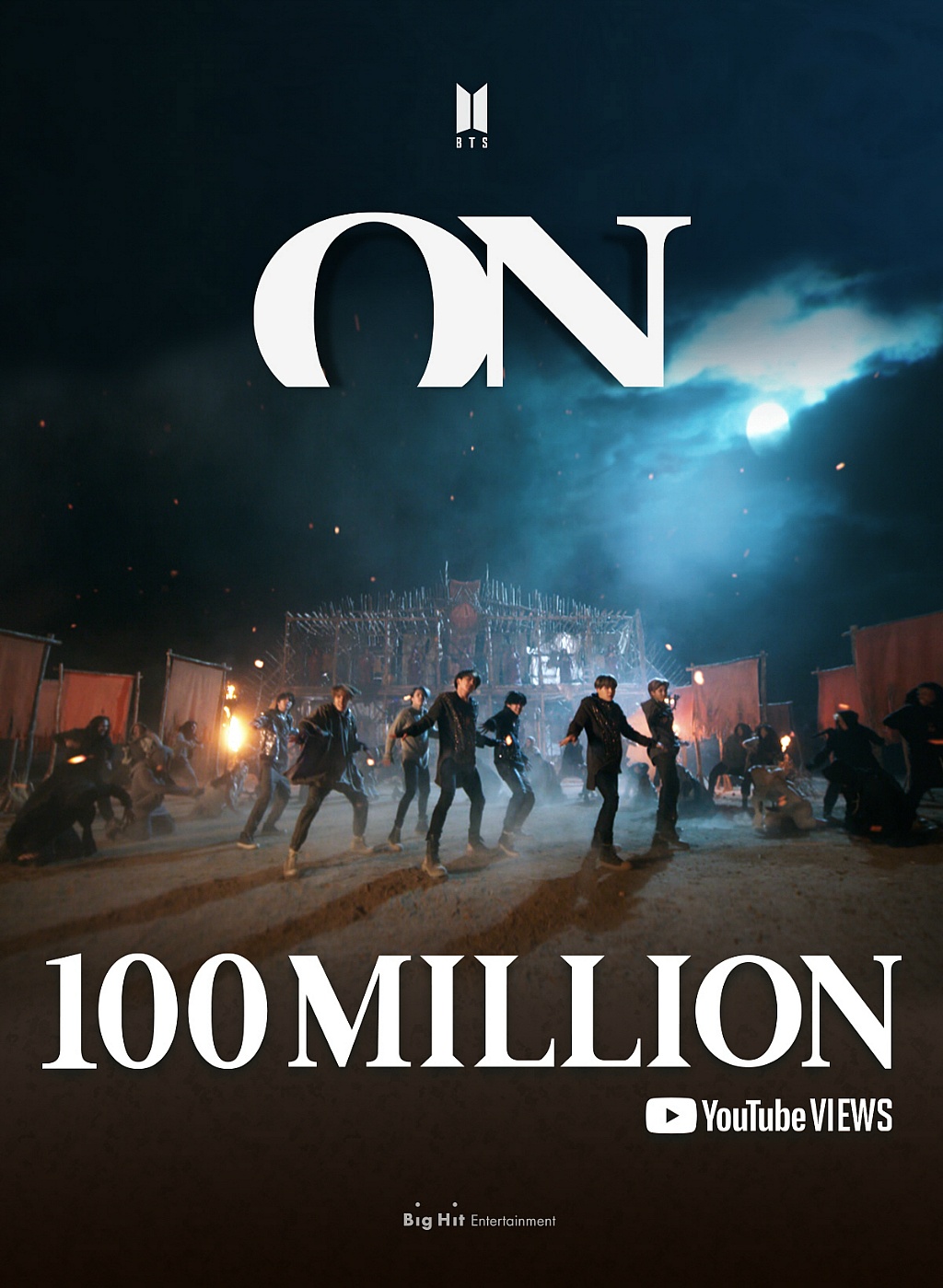 | 방탄소년단 'ON' 오피셜 MV 1억뷰 | |