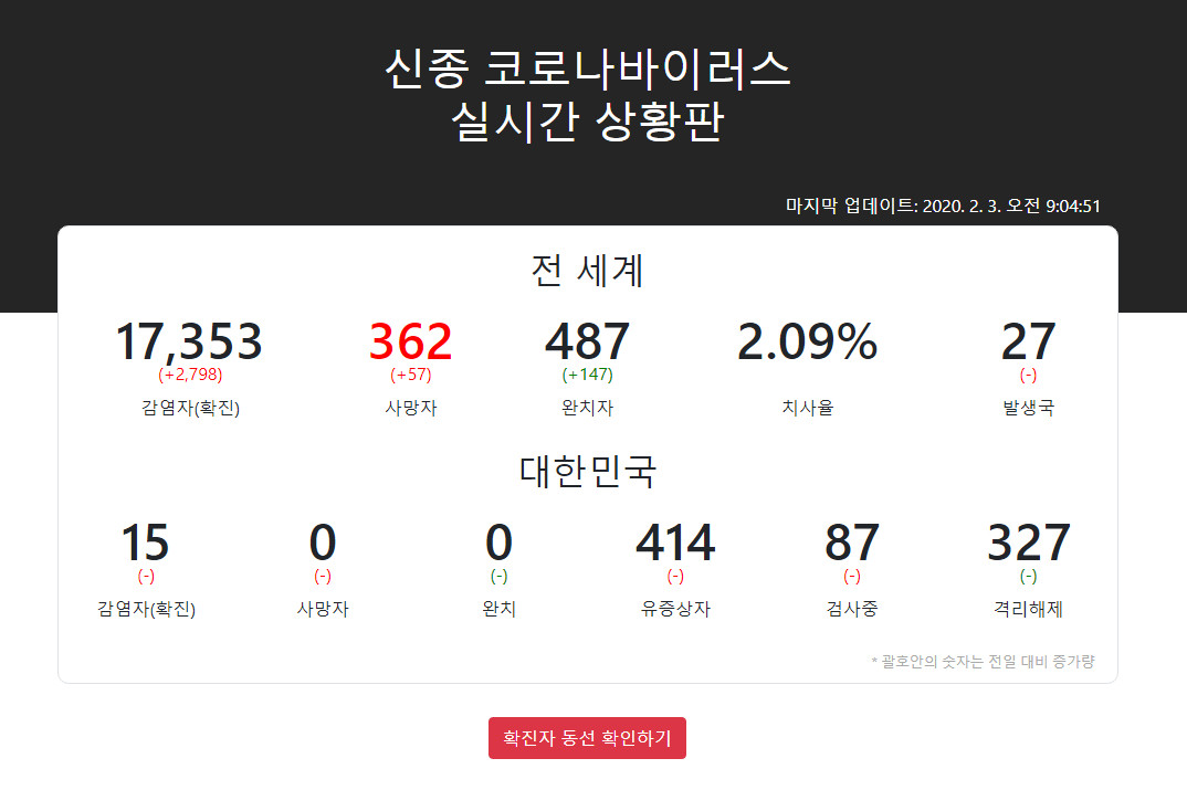 | 신종 코로나바이러스 실시간 상황판 (국내사이트) | |